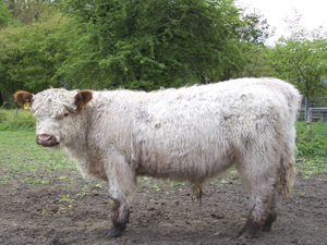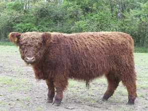 Caligula ist ein hell pigmentierter roter Gallowayjungbulle im schottischen Typ.
